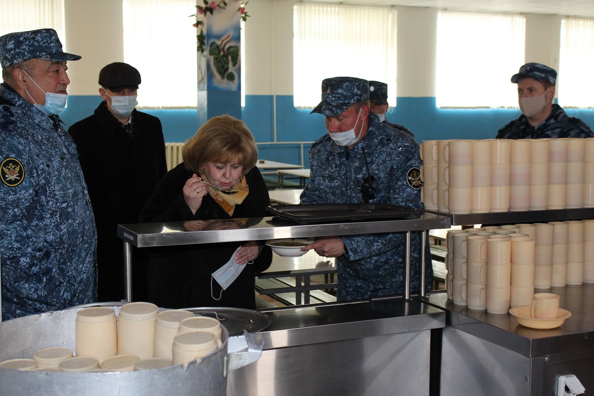При обходе помещений отрядов Ольга Дмитриевна Гальцова побеседовала с осужденными, в том числе с ограниченными возможностями здоровья, уделив внимание вопросам соблюдения права на получение медицинской помощи, проведение медико-социальной экспертизы. Жалоб на условия содержания, питание и медицинское обеспечение не поступило. В столовой участники выездного мероприятия познакомились с меню - питание разнообразно, есть диетический и постный стол.