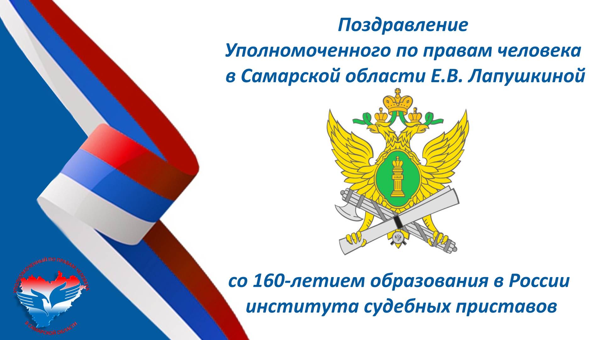 Поздравление Уполномоченного по правам человека в Самарской области Е.В. Лапушкиной со160-летием образования в России института судебных приставов1 ноября 2025 |