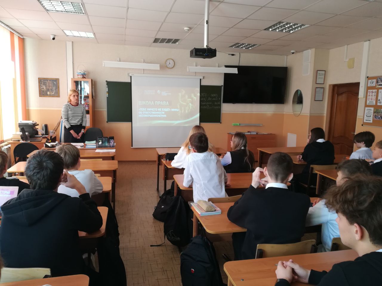 Консультант аппарата Уполномоченного по правам человека в Самарской области Ирина Харькова провела урок для учащихся школы № 174 г.о. Самара на тему :«Тебе ничего не будет»: мифы об ответственности несовершеннолетних».